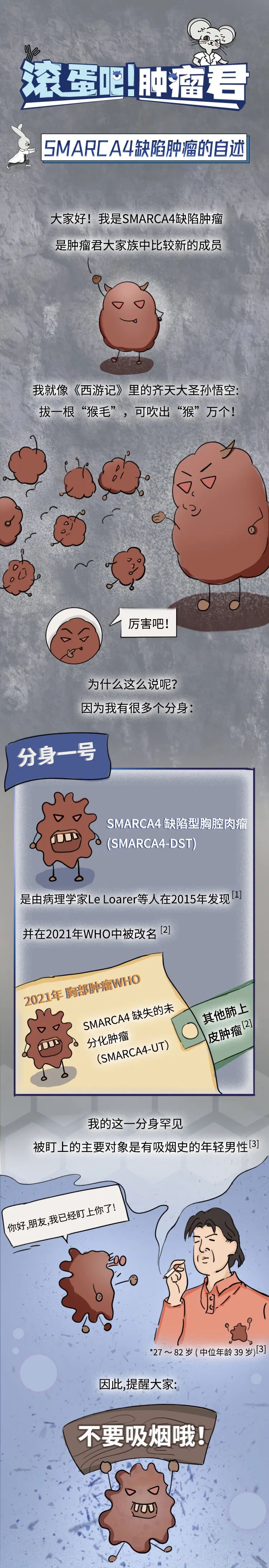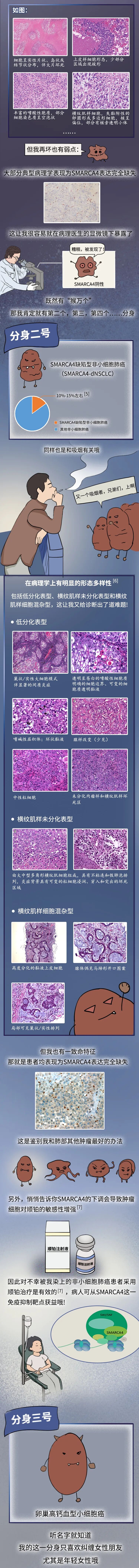 SMARCA4蛋白由19p13基因编码,是 SWI/SNF 复合体中两个互斥的ATP酶亚基之一,该蛋白的丢失可导致多种癌症的发生,包括非小细胞肺癌、胸部肉瘤和卵巢高血钙型小细胞癌等,这类肿瘤较罕见,且恶性程度高,侵袭性强,免疫组化有助于其诊断及鉴别诊断,特别是SMARCA4抗体指标应用,将有利于尽早的让患者从精准的诊断中获益。